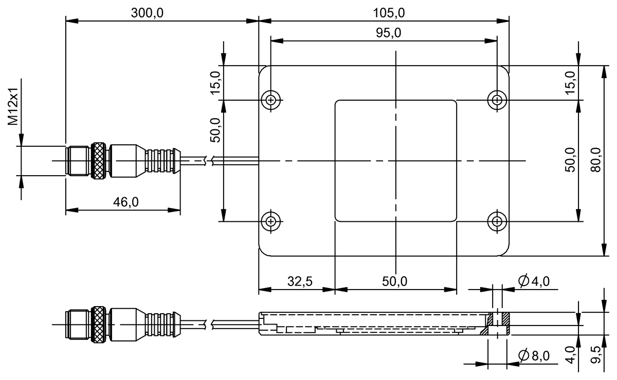 Cable with connector | M12x1-Male | 4-pin | 0.3 m